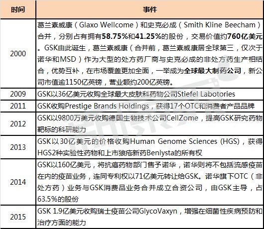 1.GSK的发展史诠释了并购是跨国药企成长的重要之路