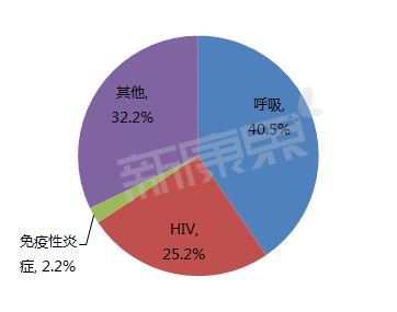 2017年处方药销售额173亿英镑,其中,呼吸领域用药占比40.5%,HIV占比25.2%,二者累计占比超六成。