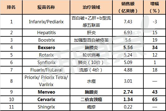 在GSK的三大业务中,疫苗领域的增速最高,达到12%。从产品表现来看,脑膜炎领域产品的增速处于高位,Cervarix由于在中国市场上市,增速由2016年的下降8%飙升至上升65%。同时,2017年10月新获批的疱疹疫苗——Shingrix,2017年的销售额已经达到了2200万英镑,市场潜力巨大。