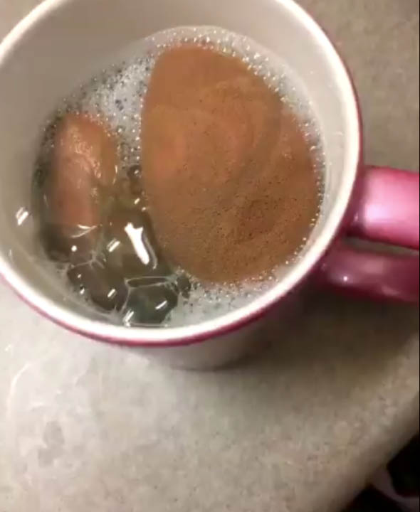 随后放进微波炉加热一分钟,拿出来后会看到水已经非常浑浊了。