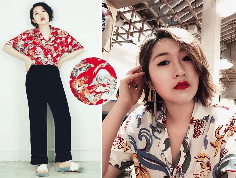 我选了两件印花棉布衬衫,虽然是男款但是我照穿不误啊~一件蓝色+黄色花纹超级度假搭配牛仔裤直接穿,另一件有虎有仙鹤的图案,有些东瀛风,用来“很睡衣”的搭配我的丝绒睡裤。