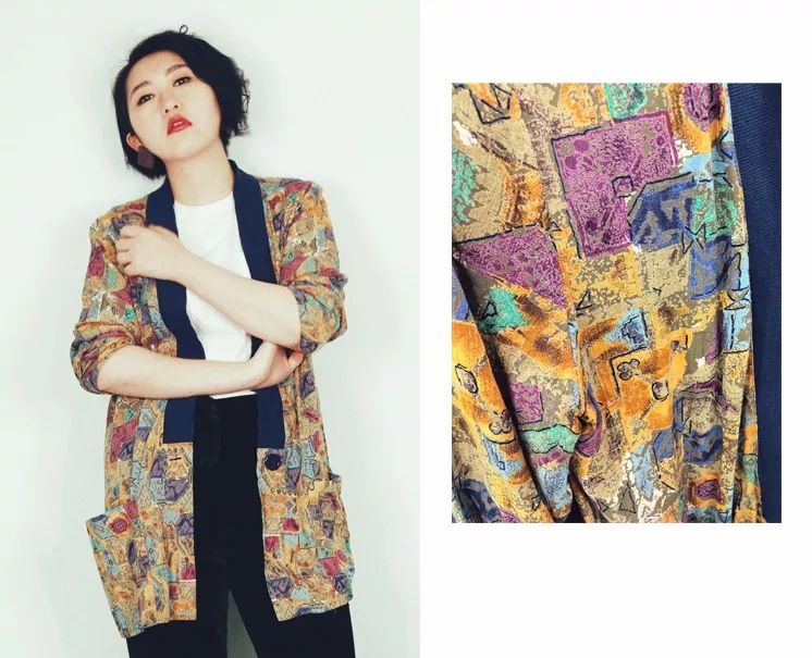 我就在一片印花海里,拉出来了一件30RMB的油画色块开衫外套,适合春夏里搭配基础单品穿!不过这边的二手,消毒不严格,所以要自己清洗和消毒后再上身~