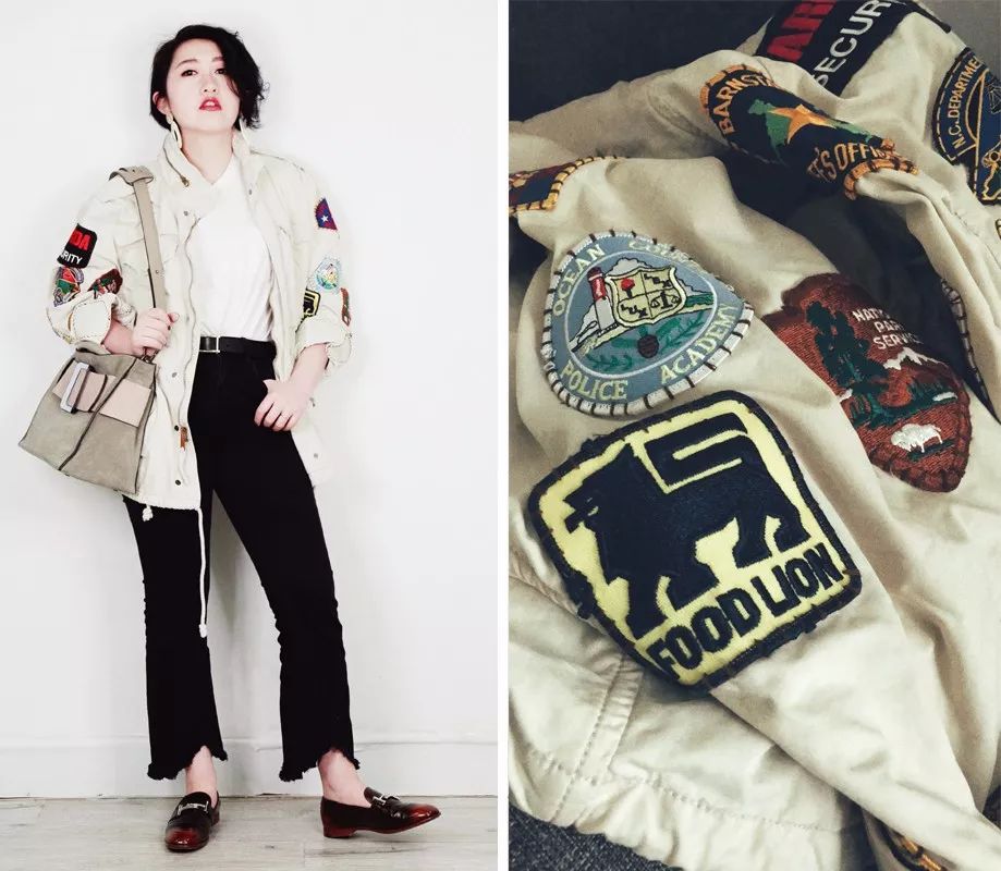 我也在这家店找到了自己非常喜欢的军装夹克,被米白色以及袖子上每一个都精致又与众不同的刺绣臂章所吸引。心里用我和你们饼夫都能穿为借口,收了下来。
