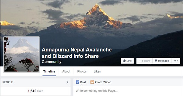 失踪登山者的亲友们担心可能出现最坏的结果,他们通过Facebook和Twitter相互联系。还有人专门创建名为“安娜普纳尼泊尔雪崩和暴风雪信息分享”的Facebook页面,以供人们实时发布和更新相关信息。