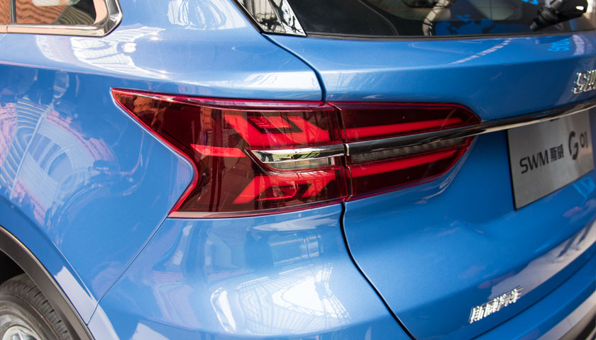 在车辆尾部部分,同样被采用“弓箭”元素设计的后尾灯加镀铬装饰条贯穿。与车辆前脸设计相呼应。同时,也使车辆尾部视觉效果上更加“宽”,提升了车辆在车流中的辨识度。此外,SWM斯威G01还采用了双排气管设计,来增加车辆的运动气息。