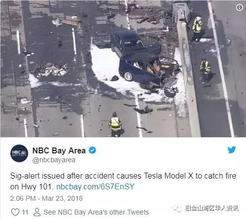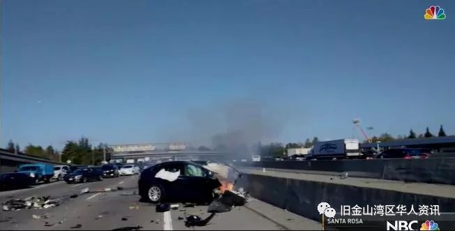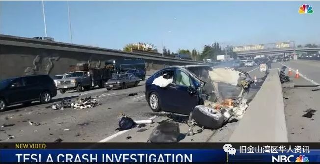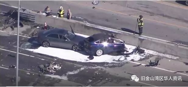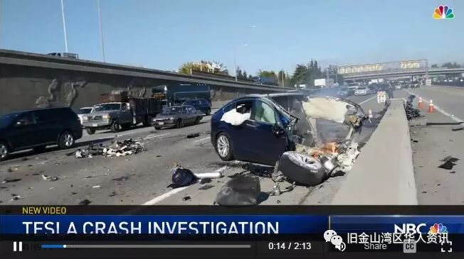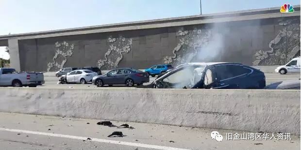 23日早上上班高峰期,38岁的圣马刁( San Mateo)男子黄某(Wei Huang)驾驶着一辆蓝色特斯拉X型车辆(Tesla Model X)在山景城段(Mountain View)的洲际高速公路上向南行驶,突然车辆失控并撞到了道路中间的隔离带,导致汽车起火。