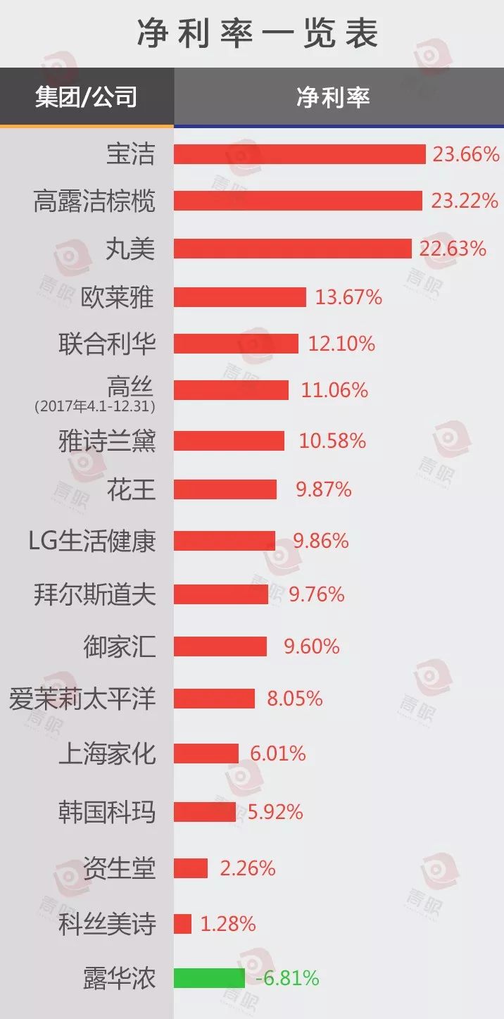 虽说高露洁棕榄不只是卖牙膏,但仅就净利率而言,高露洁棕榄却比手握CPB等高端美妆品牌的资生堂高出10倍有余,而丸美虽暂时冲击IPO未果,然其净利率却远超欧莱雅和联合利华。