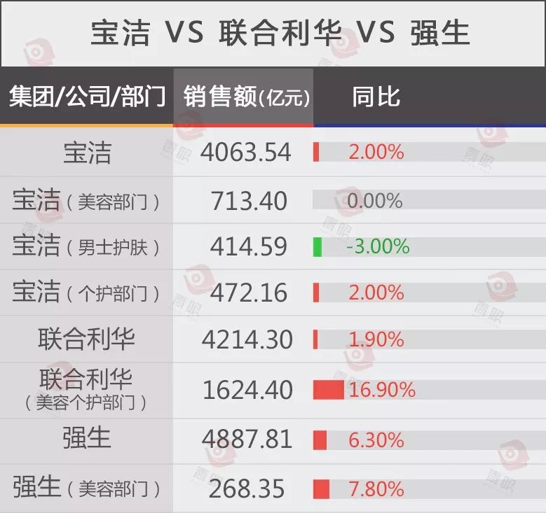 “佛系”强生越来越与世无争,而联合利华追赶宝洁的步伐却从未停止,去年先后收购了A.H.C、Hourglass等多个美妆品牌,从整体销售来看,收购行为似乎已见成效,但宝洁去年净利润增长了45%至961.26亿元,遥遥领先于净利润增长16.9%至510亿元的联合利华,全球日化NO.1的地位岿然不动。