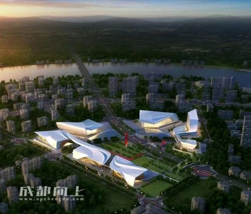 温江文体中心:项目选址于原城南工业区内,地处凤溪大道和温泉大道交界处,由体育中心和文化中心构成,约201亩。其中体育中心由全民健身馆(含标准室内游泳池)、体育公园组成。文化中心由剧场、博物馆、图书馆等组成,项目投资规模约17.5亿元。