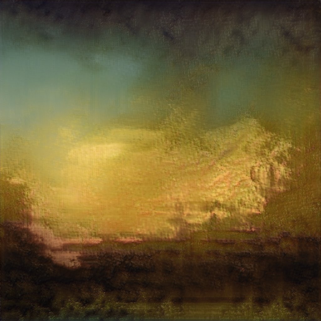 推主@Robbie Barrat平日里热衷于研究机器深度学习和艺术,将两个一结合,就成了让AI画画。原本他的研究主题是让AI画风景,像这样: