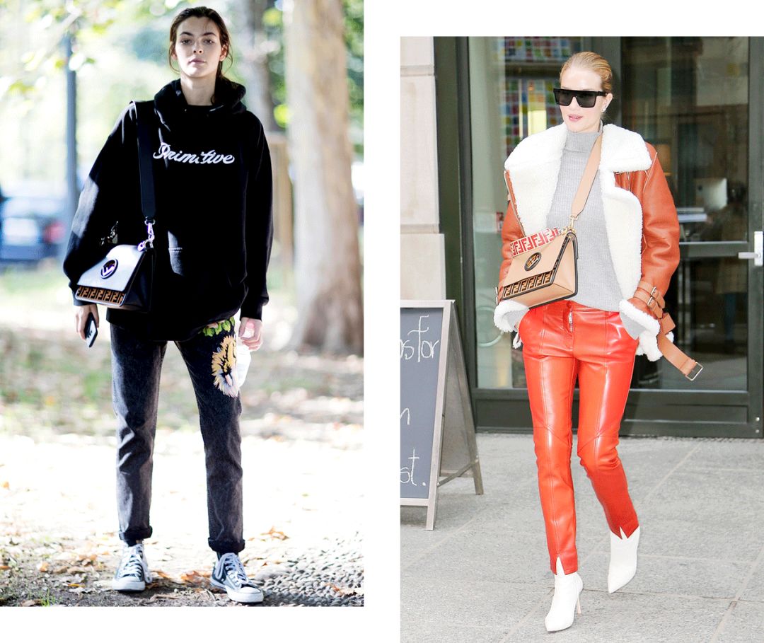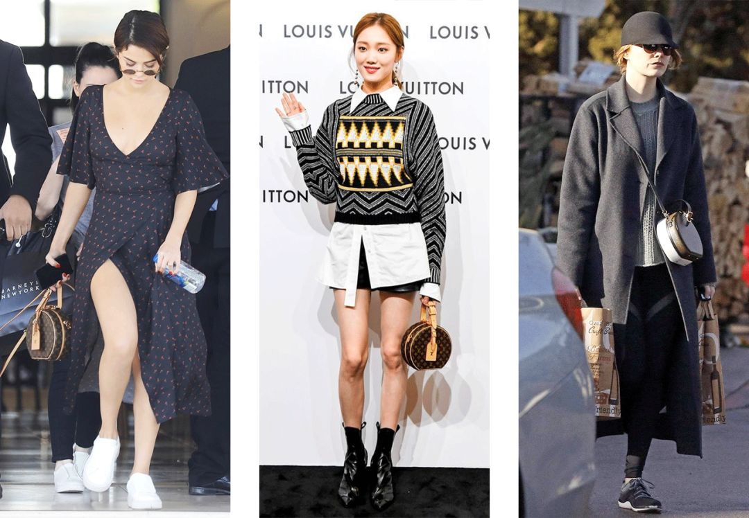 虽然它配有两款包带,可以斜背,也可以手拎,但最流行的方法是手拎。插一句,因为这款包火了,所以直接带火了这种圆形手拎包的风潮,好多牌子的包都沾了它的光,时装周上到处有人领着个小圆包赶秀。