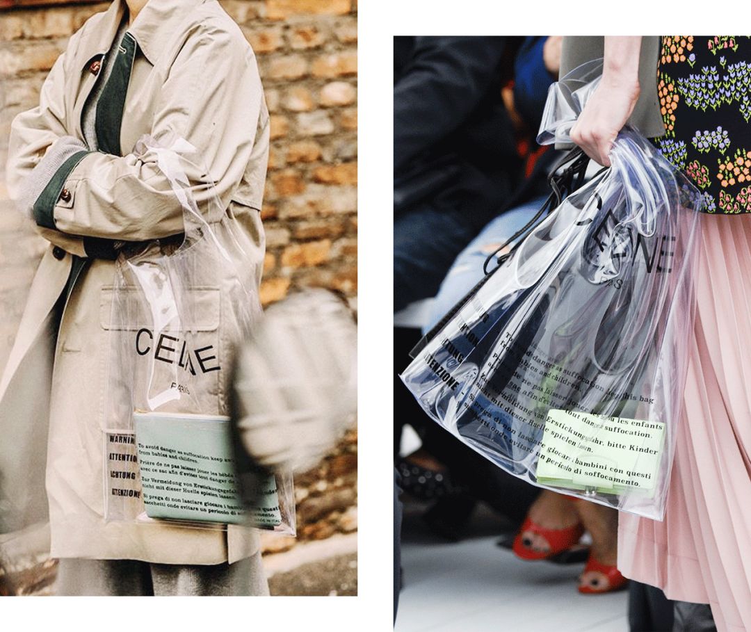 比如买一个价格合理,设计美观的CéLINE手袋,外面套一个设计师品牌的透明包,一样可以很时髦。