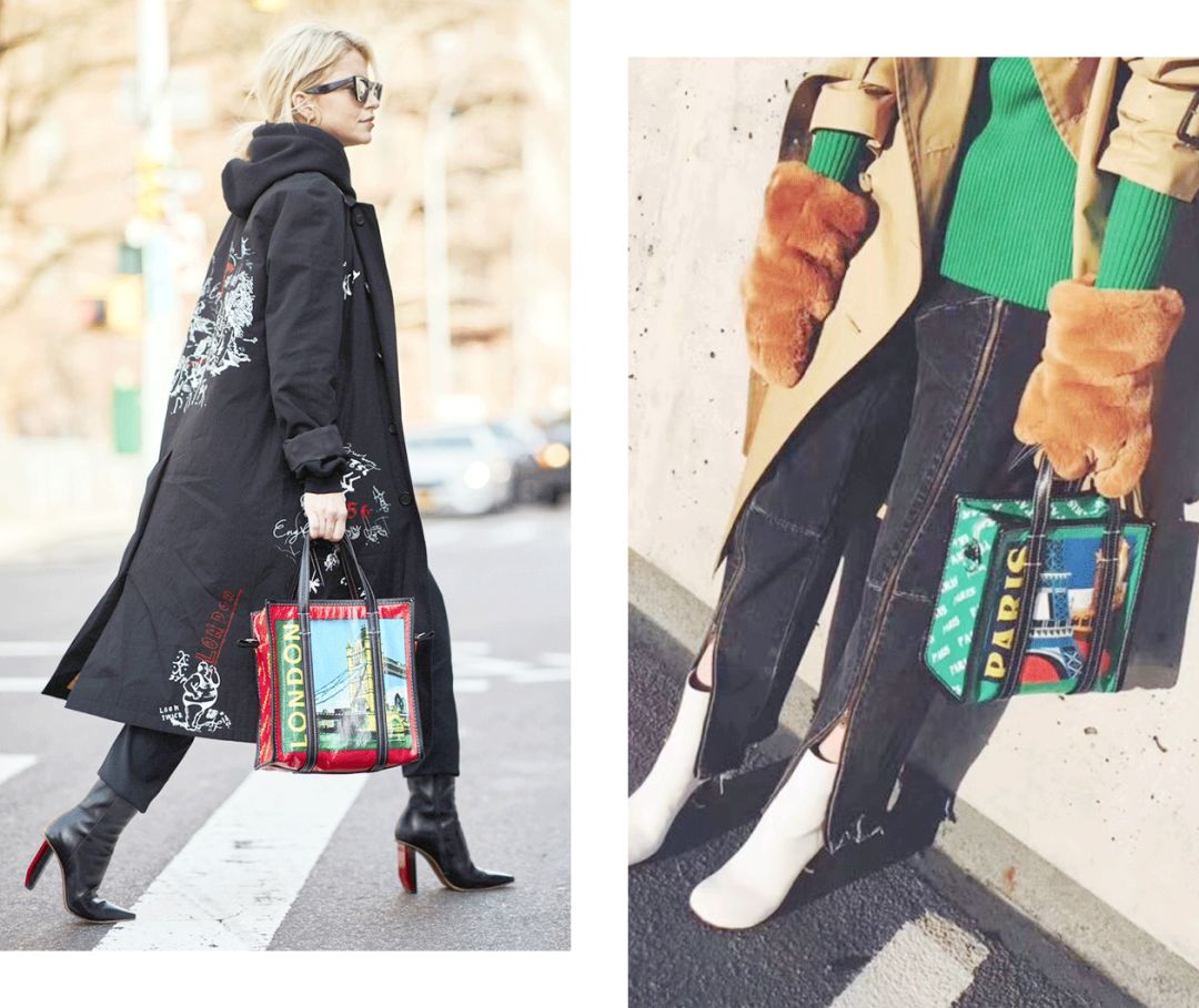 最近它又火起来的原因,是这款包推出了很多图案。比如主题分别是纽约、东京、米兰、巴黎的城市图案,以及在机车包上也有的涂鸦图案。非常能张扬个性,所以很多人都在时装周上背了起来。