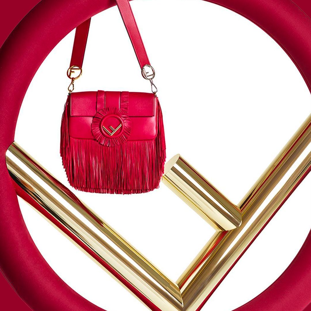 相比KAN I,这款最大的特点就是包面上多了个镂空的LOGO,看上去像一只F字母惬意地躺在圆圈里面,非常有趣。不止是包面,有几款包带也用圈圈logo衔接,想让人不知道这是FENDI的也难。