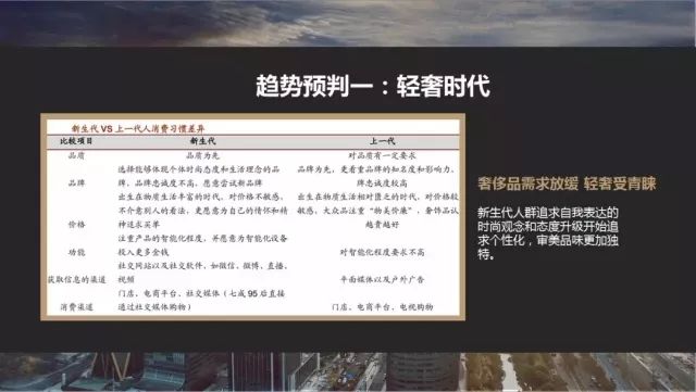 据董嘉鹏分析,到2020年,“90后”会占中国总人口的46%。这一批人的父母都是60年代出生的,他们从小受到较好的教育,家庭相对富足,获取信息多元化,购买渠道多样化,这一批消费者将是轻奢品的主力消费人群。
