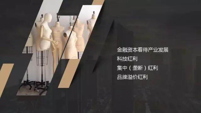 董嘉鹏从金融资本的角度对服装产业进行解读,“金融资本是否支持一个产业的标志就是,这个产业是否能获得超额的利润,在我们服装领域,有几个方面:科技红利,集中(垄断)红利,品牌溢价红利。”