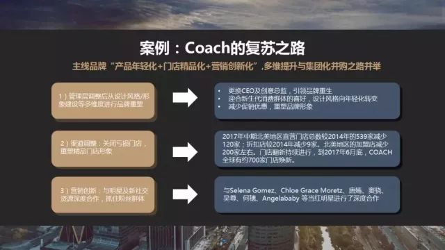 董嘉鹏认为,Coach的复苏之路,总结起来就是:主线品牌“产品年轻化+门店精品化+营销创新化”,多维提升与集团化并购之路并举: