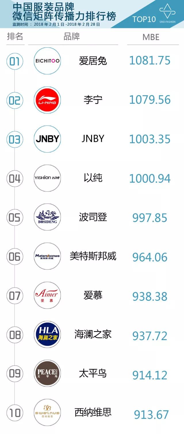 本榜单是通过观察监测中服数据库中所有中国服装品牌的官方微信矩阵相关数据,分析得出的中国服装品牌微信矩阵传播力排行榜,横向拓展、具体深入地探究了服装品牌在微信传播方面的情况。