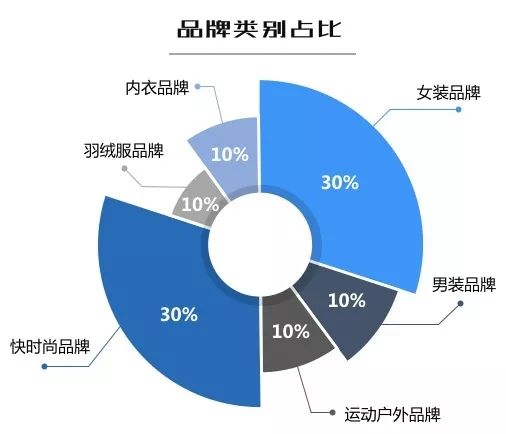 TOP10中,女装品牌有3个,分别是爱居兔、西纳维思和JNBY,占比30% ;运动品牌有1个——李宁,占比20%;快时尚品牌占比30%;男装品牌、内衣品牌、和羽绒服品牌各占比10%。