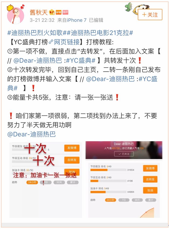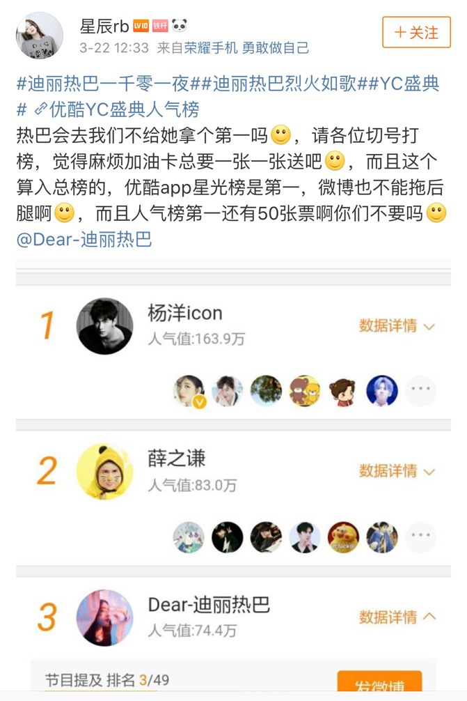 听起来有些复杂是不?但这才能充分展现各家粉丝强大的组织力和执行力啊。正所谓胜者既正义,我们来看看迪丽热巴的粉丝是如何做的。