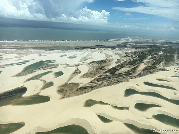 在广袤无垠的沙漠里,林林总总有千百个绿色的月牙湖,这等奇观在巴西,遇上方知有!青绿色的泻湖与白色的沙丘交相辉映,美不胜收。尽管是在雨季,但池塘也是充盈了水但是参观过程中没有任何水飞溅。