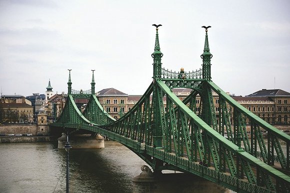 见惯了红色的金门大桥,殊不知欧洲也有一座壮观的绿色大桥,比金门大桥要早呢!自由桥最初是以奥匈帝国国王——弗朗兹 约瑟夫的名字命名,二战后改名为自由桥。自由桥是钢铁制的,横梁中间是匈牙利国徽,国徽上是王冠。有轨电车从自由桥通过,到了晚上,亮了灯的自由桥非常美丽。桥的佩斯这一侧是著名的中央市场,而布达一侧则是盖勒特温泉浴场。