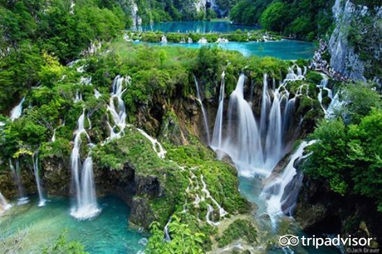 普利特维策湖瀑布 普利特维采湖群国家公园位于克罗埃西亚中部的喀斯十六湖国家公园被列入为世界文化遗产,公园内有许多有石灰岩沉积形成的天然堤坝,这些堤坝又形成了一个个湖泊、洞穴和瀑布。有"欧洲九寨沟"之称,飞泉流瀑,阶梯式的瀑布是其特色,宏伟的山林,翠绿的湖泊,清澈见底,鱼群幽游的湖水,更令人惊艳。