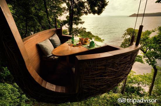 在泰国,有一个别具一格的树屋餐厅,菜绿,装潢更绿,位于Soneva Kiri度假村。在这个没有摩天大楼的海岛上,如何风景尽收地享用美食?餐厅别出心裁的地理位置满足你!一棵大树就是一个开放式的私人餐厅,服务员小哥需要稳稳地端着盘子,挂着滑索在树与树之间“嗖嗖”穿梭,上菜倒茶,是不是超有趣!