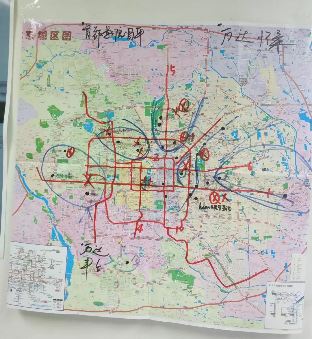 在资料馆办公室墙上贴着一张北京市影院的区域划分图,将地铁线路和城区分布标注出来。此次展映活动中共有28所商业影院、3所高校、1家艺术影院(资料馆)和1个VR场地,新增加了昌平、丰台、怀柔等地区的五六个影城。这33个地点要分别组成不同的组合,例如天幕新彩云国际影城、华星国际影城靠近北三环,辐射海淀区,北京沃美影城(常营店)、金逸国际电影城(朝阳大悦城店)、耀莱影城(慈云寺店)是另外一个组团。