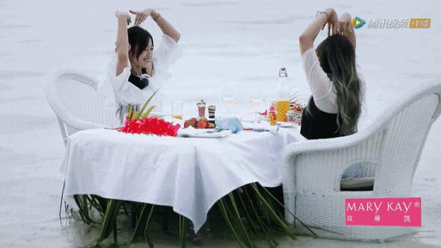 海边的波拉波拉特别宁静唯美,空气中弥漫着浓浓的浪漫气息,程潇和宣仪就来了海中一场闺蜜下午茶。伴着美酒佳肴,这样的环境就更显私密尊享了。
