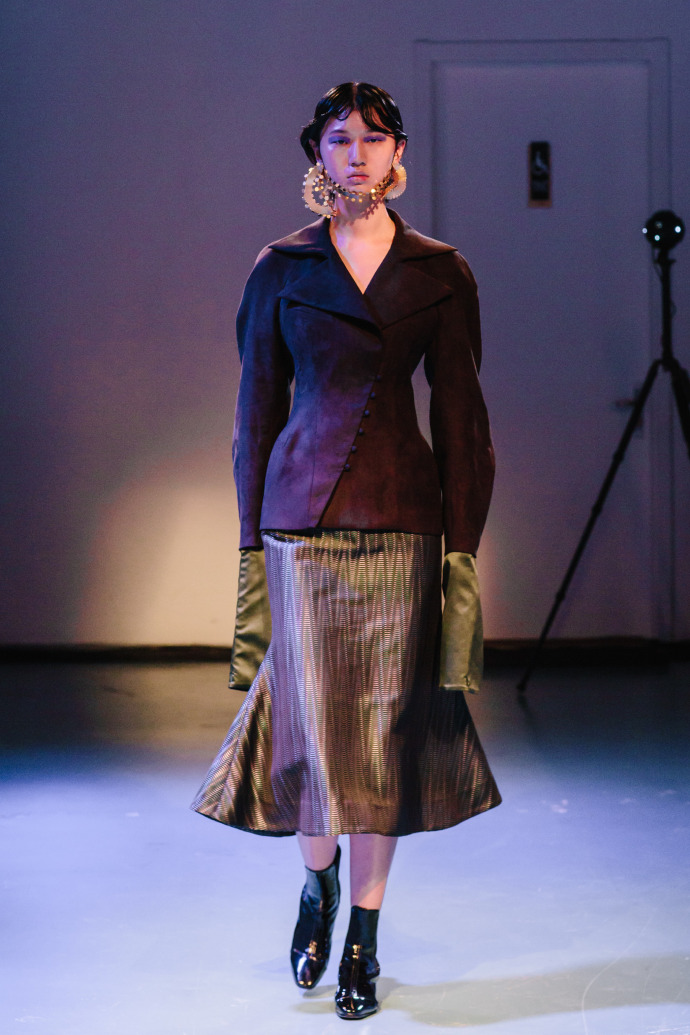 设计师黄婉冰这一季受古巴籍女艺术家Ana Mendieta的行为和雕塑艺术启发,设定了主题“叛逆土壤”,这个上一季同样从自然界的“水”取材主题相似。设计师用床和木头在秀场搭建起呼唤归属感的装置,秀场请来法国实验性音乐家Yann Gourdon现场表演,她表示,这次和上一季《记忆碎片》类似,也更多是情感方面的表达。我做秀更注重的是整个场景的氛围,服装是我作品的一部分,装置也是,秀的当天才是我的完整作品。