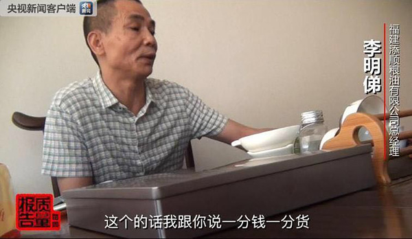福建添顺粮油有限公司总经理李明俤:标是这样标,他们可以检测出我们这里面有这个成分。