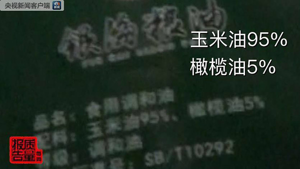 在福建吉农食品有限公司,记者看到一款净含量5L装的橄榄调和油,配料表里标称含有6%橄榄油,94%菜籽油,出厂价34元。而参照当时市场价格,仅原料成本就已经超过出厂价,达到了40元。面对质疑,这家公司负责人不得不承认,包装上所突出的橄榄油其实添加不了那么多。