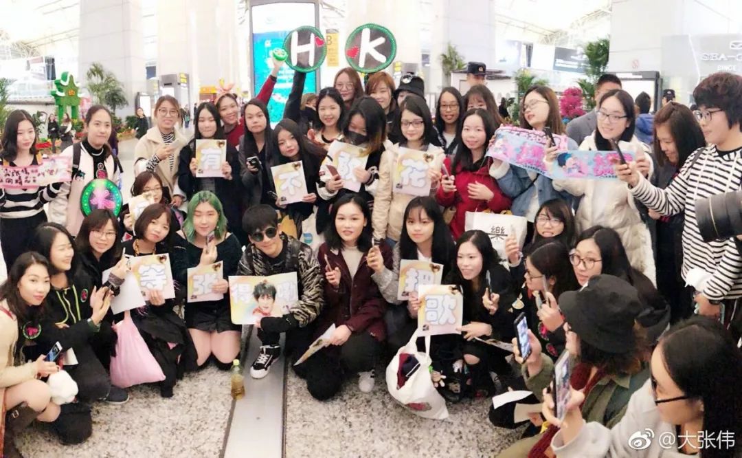 当然,也有爱热闹的明星。甚至亲自下场组织,玩得乐此不疲。像大张伟,每次都跟接机的大蜜们合影,还都搞个主题。大张伟的微博每次都会更新接送机的视频或图片,弄得大张伟的粉丝各个想去接机。