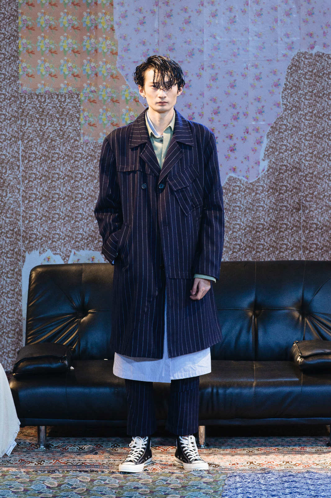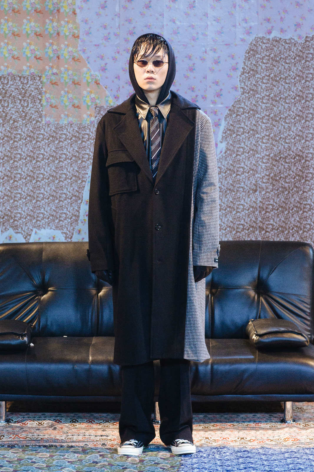 作为首次在THE WORLD IS YOUR OYSTER在LABELHOOD亮相的品牌,设计师此次大量的采用拼接格子、布块以及印花元素,整体色彩偏暗色系。保留着对唯物主义的质疑,品牌用服装表现了当时人们通过文学等不同文化方向表达自己对社会现象的不满。