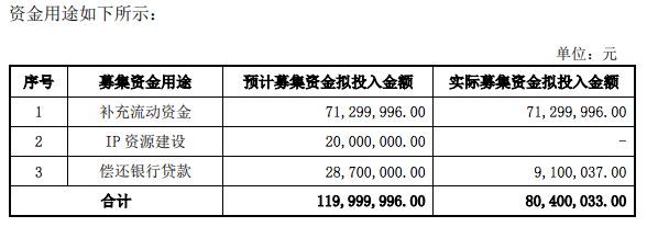 本次募集资金将用于补充公司业务发展所需要的资金,主要体现在以下两个方面: A. IP 版权运营,包括将虚拟形象库与衍生品库相结合,准确投放营销资源与市场费用,将版权或衍生品以商品形式形成商业模式闭环等,也会与影视、动画、游戏、漫画行业头部资源合作,参与动画大电影、动画片、游戏研发、短视频、音频、漫画等。B. IP 版权推广,包括渠道投放、品牌展会等。