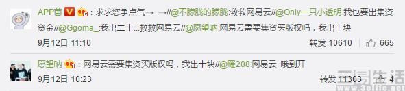 仿佛是为了证明自己的在“人缘”方面没有什么问题,在去年9月腾讯音乐竟然罕见地和阿里音乐达成了合作。业内一度传闻,当初网易云音乐和腾讯音乐之间之所以“闹掰”,乃是因为资费方面没有谈拢,换了个大方的阿里音乐,合作一下子就达成了。于是不少网友在网易云音乐的官方微博下面疾呼,“需要集资买版权吗?我出十块”、“我出二十”。