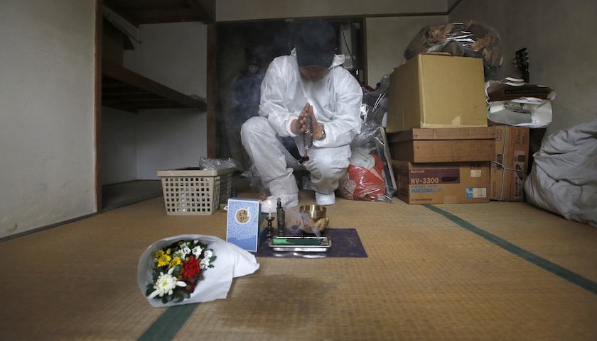 《华盛顿邮报》今年1月的一则报道描述了一个让人心悸又心酸的场景:东京的一处公寓散发出腐败的气味,蒲团上有着明显的棕色污迹。被褥、衣服、报纸上爬满了蛆虫和苍蝇。从事“孤独死”清理工作的Next公司正在进行清理。