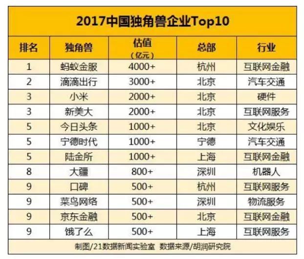 根据胡润研究院公布的数据,21数据新闻实验室汇总出了2017中国独角兽企业TOP10榜单,今日头条排在第5位,估值达到了1000亿元人民币。而就在前几日,有自媒体爆料,今日头条已经开始筹备新一轮的融资。据投资机构人士表示,本轮融资之后今日头条的估值可能将达500亿美元以上。