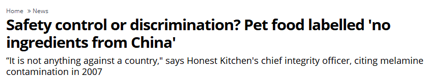 面对客户质疑,该品牌发言人辩称:“十年前,美国出现大规模宠物食品召回事件,当时许多被召回宠物食品中皆含有中国出产的原料。自此,人们就担心宠物食品中含有来自中国的原料,甚至许多中国客户也希望,购买的产品不含来自中国的成分。”
