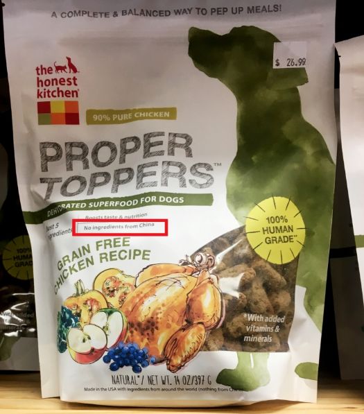 据《环球时报》报道,此前有列治文居民杜某,在当地商店购买Honest Kitchen品牌狗粮时发现,该品牌狗粮包装袋上赫然印着"不含来自中国成分"的字样。