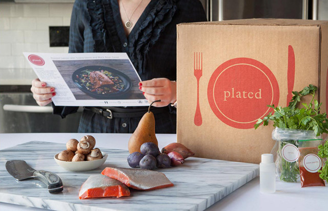 像Plated和Blue Apron这样的服务,选好要做的菜式后,可以按比例将食材送达,打开包装就可以快速做一顿美味佳肴了,而不会造成浪费(谁做一顿两个人吃的饭需要用掉一整把香菜呢,是吧)。