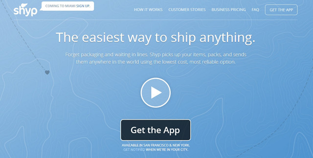 Shyp将自己描述为“运送任何东西最简单的方法”,照顾到运输过程从上门取件、到包装,再到送达的每一部分。这项服务在纽约和旧金山对个人及企业都可用,同时有iPhone app可下载,使用更快捷方便。