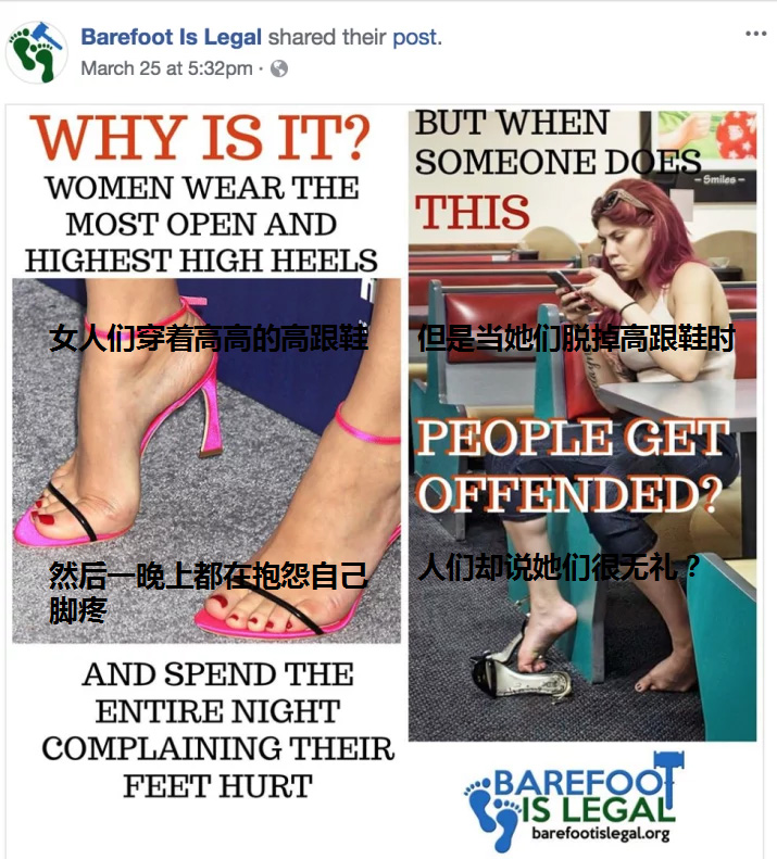 “光脚是合法的”的脸书主页经常刊登关于“光脚”的文章、图片和自制表情包,促进成员们交流互动。