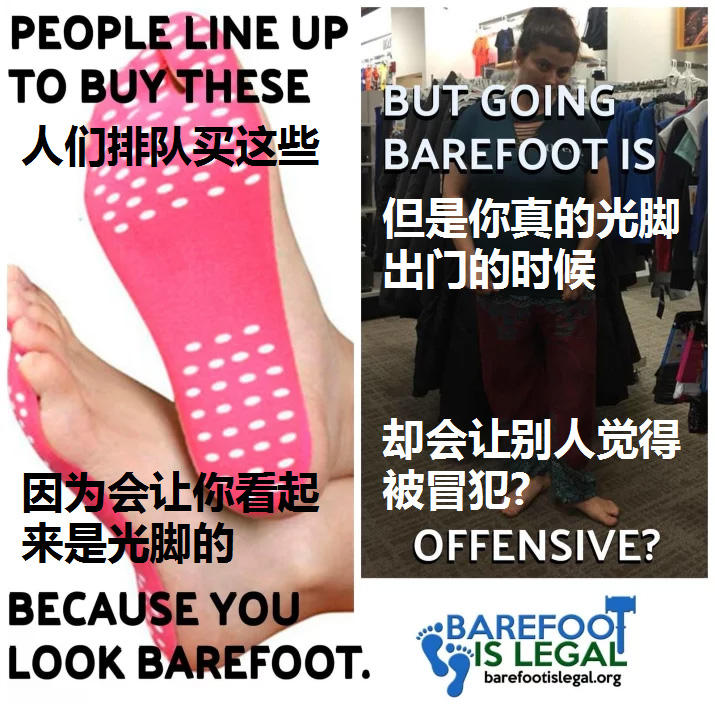 总之,“光脚是合法的”组织的领导者们表示,他们只是希望和其他穿鞋的普通人一样“共同生活”。