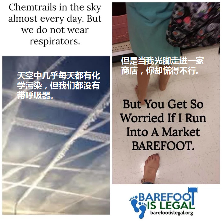 “他们的逻辑点在于健康威胁,”Deutschmann说,“光脚只会接触到地面,并不会接触到食物或者餐具什么的。我们也不会用脚在杂货店里挑苹果。”