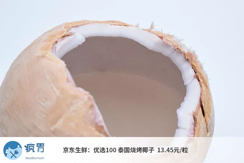 而在椰肉方面,它的椰肉正在从柔嫩往硬脆生长,果肉厚度足够且椰肉比较柔软,但已经不是铁勺可以挖着吃的了,但即便如此也仍然是本次评测中椰肉第二美味的选项。
