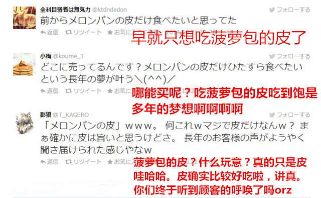 然后大家就开始歪楼了,俗话说不能探讨人生的哲学家都不是好吃货,有没有卖没有皮的菠萝包的?