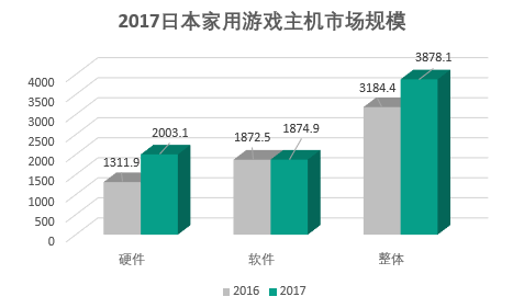 4月3日,Fami通发表了《2017年度日本家用游戏主机市场报告》,报告显示2017年度日本家用游戏主机市场规模达到了3878.1亿日元(约合人民币230亿元)。对比中国游戏主机市场相关数据,2017年度中国家用游戏主机市场实际销售收入则只有13.7亿元。