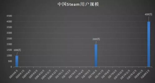 据Steam官方统计,中国玩家数量从2016年的1000万人,激增至2018年4000万人。从2000万到4000万期间,平均每月增长250万人,此外其他国外游戏平台的中国玩家数量也有不同程度增长,增速相当可观。